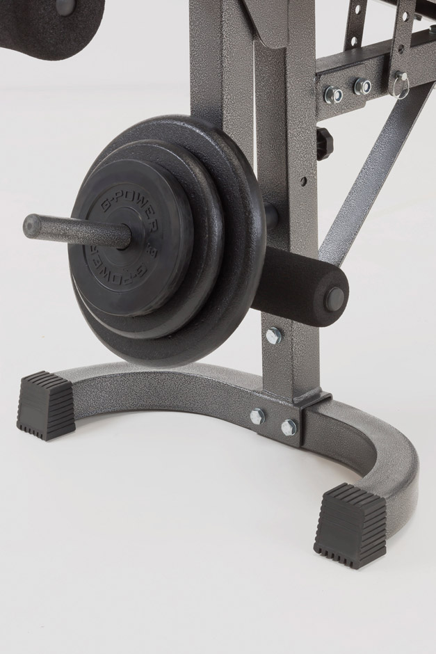 PROFESSIONELLE HANTELSTANGEN-BANK. BEINVERLÄNGERUNG ENTHALTEN. ARM-CURL ENTHALTEN. ZUSAMMENKLAPPBAR.