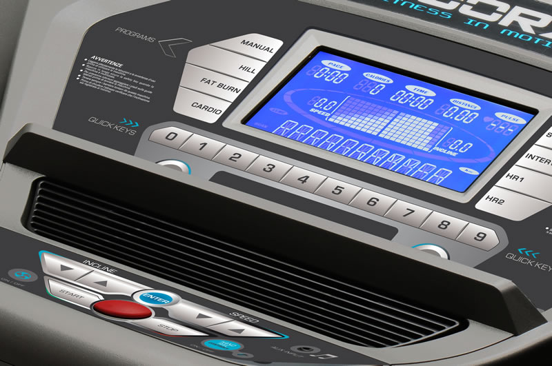 Geschwindigkeit – Steigung – Herzfrequenz – Distanz – Laufrhythmus – Kalorienverbrauch – 400-Meter-Runde – Segmentzeit – laufendes Programm |