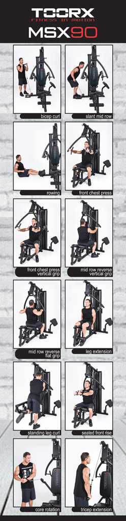 μπάρα για τρικέφαλους, διπλό σχοινί για τρικέφαλους, 2 λαβές και αστράγαλος για έλξεις περιλαμβάνονται