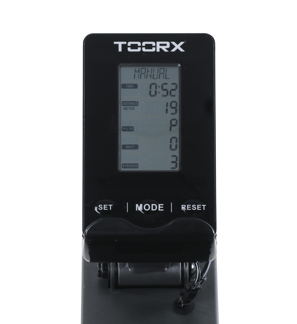 | Información | Número de remadas/min y totales, calorías, tiempo, tiempo/500 m, distancia, pulso, vatios | Programas: manual, intervalo 20-10, intervalo 10-20, intervalo personalizado, tiempo/distancia/calorías/remadas/pulso objetivo |