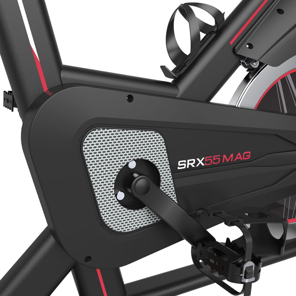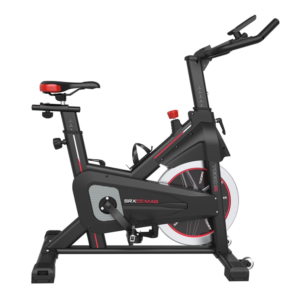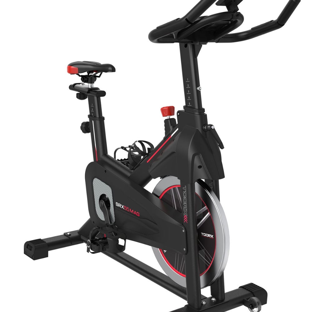 SRX 55 MAG met zijn magnetische remsysteem in combinatie met een indrukwekkende vliegwielmassa en de fietscomputer die is overgenomen van de duurdere modellen, is de SRX 55 MAG een zeer interessant model in het prestigieuze assortiment indoorfietsen van het merk Toorx.