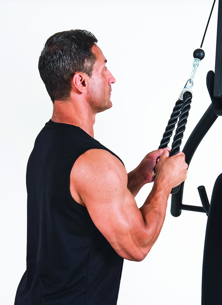 tricepsstang, dubbele touw voor triceps, 2 handgrepen en enkelband voor pull-ups inbegrepen