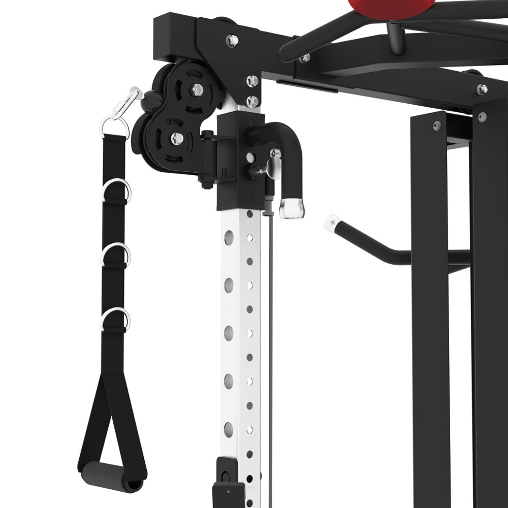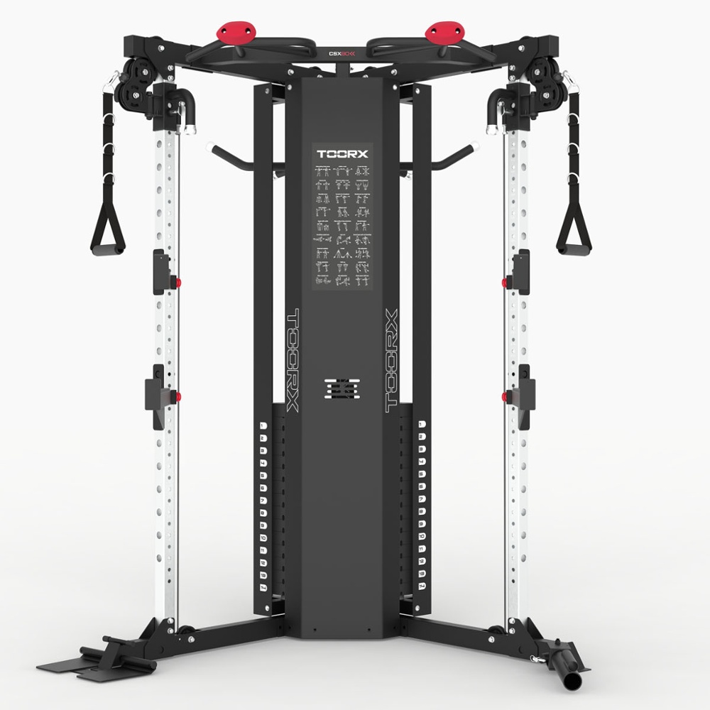 | Akcesoria | Mina lądowa, blokady bezpieczeństwa, haczyki J-hook, uchwyt do podciągania, opaska na kostkę, drążek do ćwiczeń bicepsów, podwójna lina do ćwiczeń tricepsów, regulowany uchwyt i drążek Lat Bar w zestawie. |