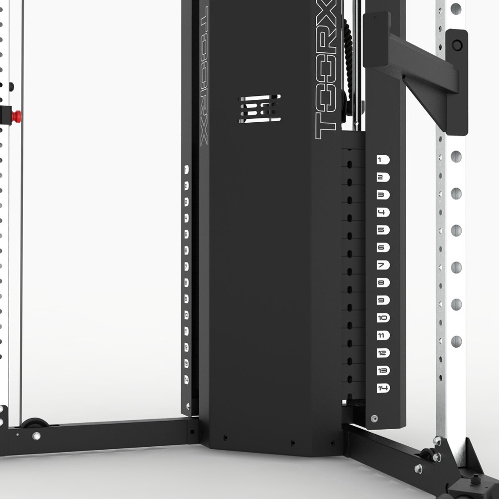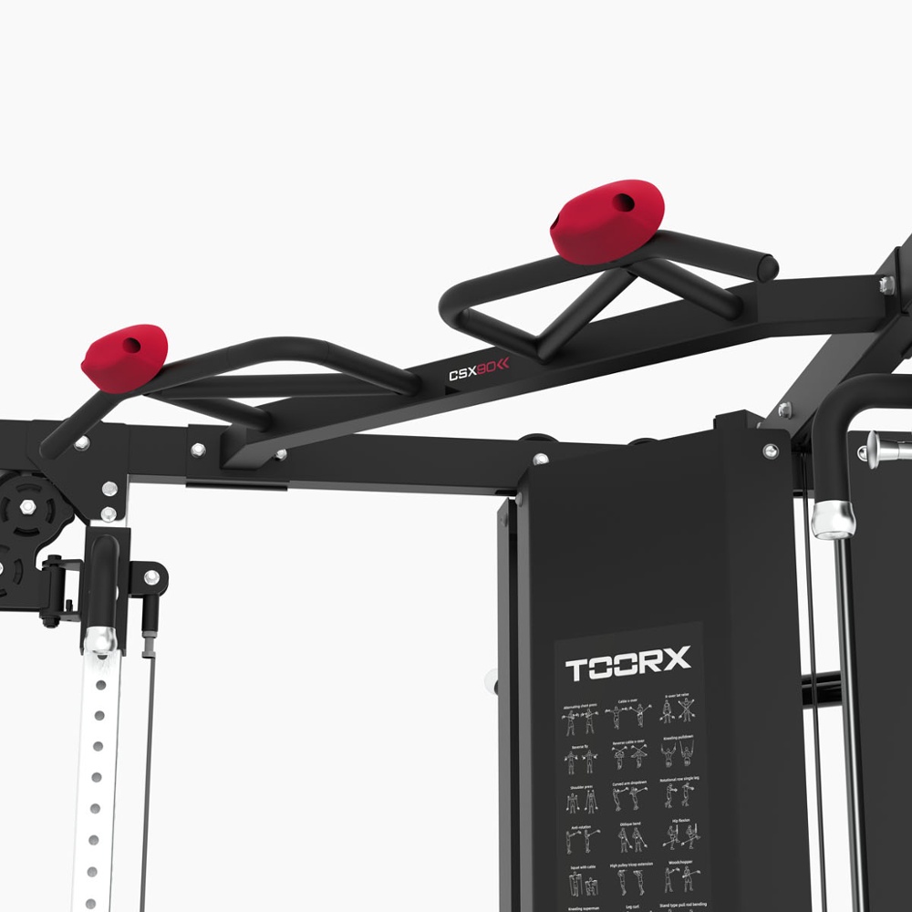 CSX 90 to jednak również stojak wyposażony we wszystko, co potrzebne do treningu funkcjonalnego, od wielofunkcyjnej drabinki do podciągania się, przez podpory do sztangi, po zabezpieczenia i landmine, aby zapewnić niezrównaną różnorodność ćwiczeń.