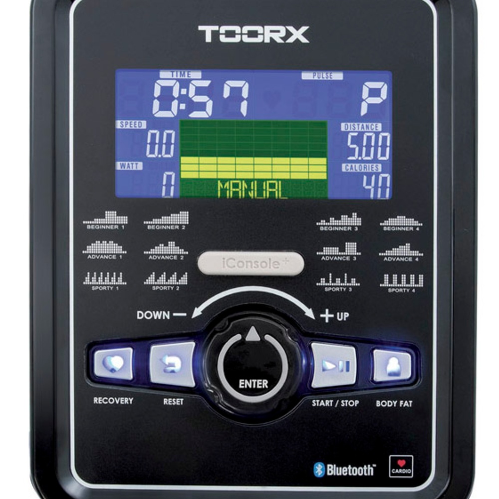 | Informazioni | tempo, velocità, distanza, calorie, pulsazioni, RPM, programmi: manuale, beginner, advance, sporty, cardio, watt, recovery, body fat tester, 4 HRC |