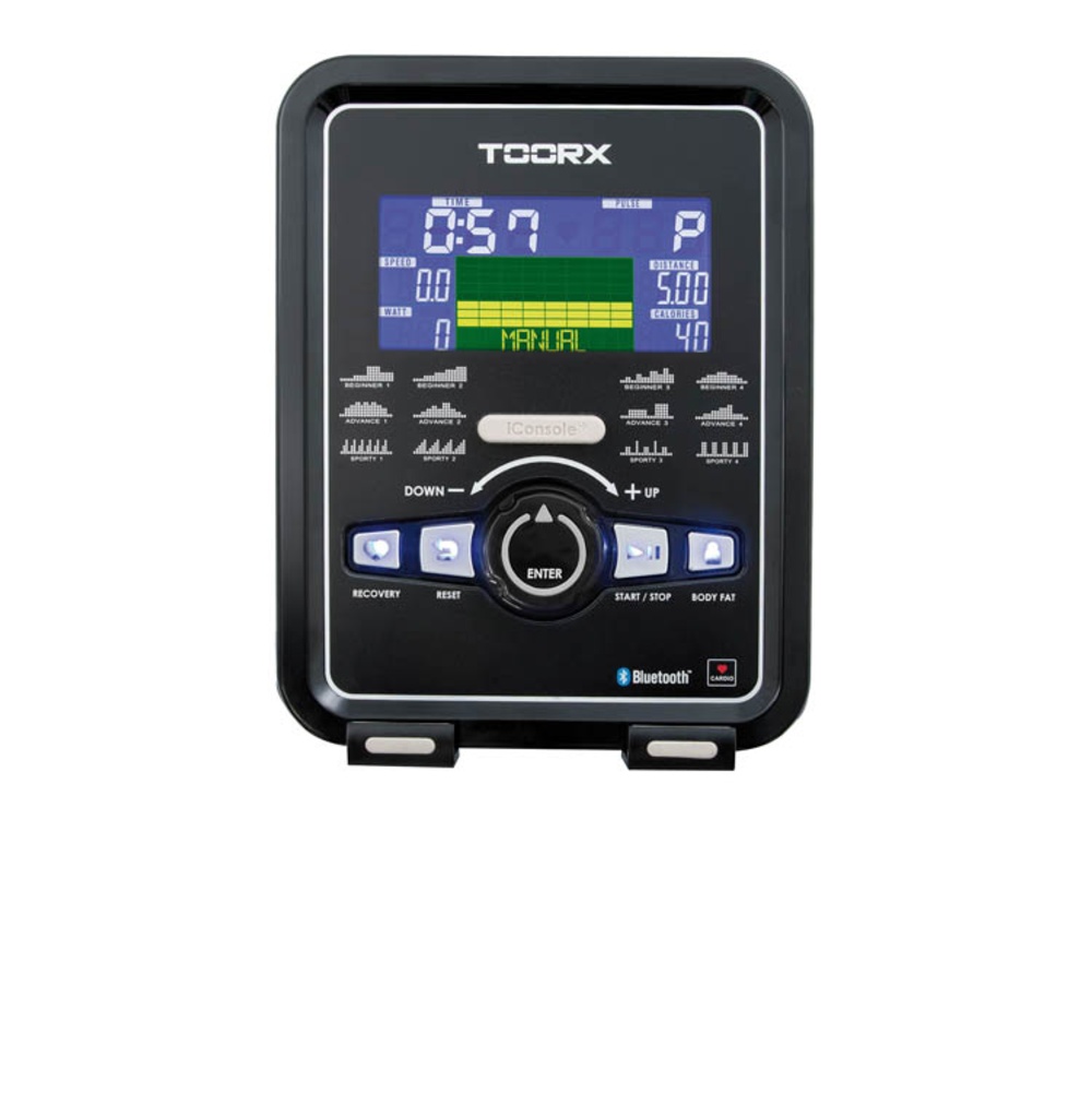 | Informazioni | tempo, velocità, distanza, calorie, pulsazioni, RPM, programmi: manuale, beginner, advance, sporty, cardio, watt, recovery, body fat tester, 4 HRC |