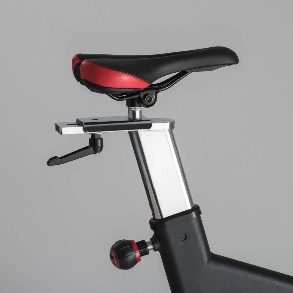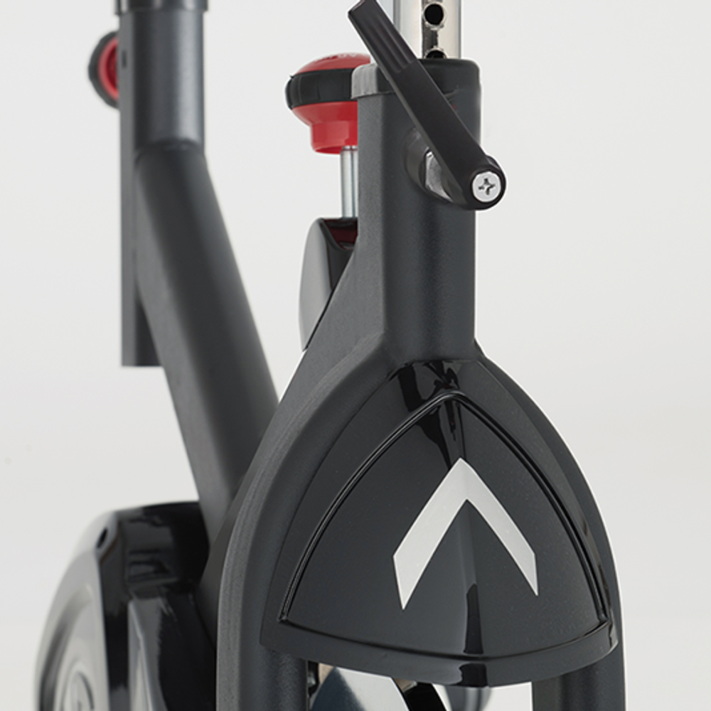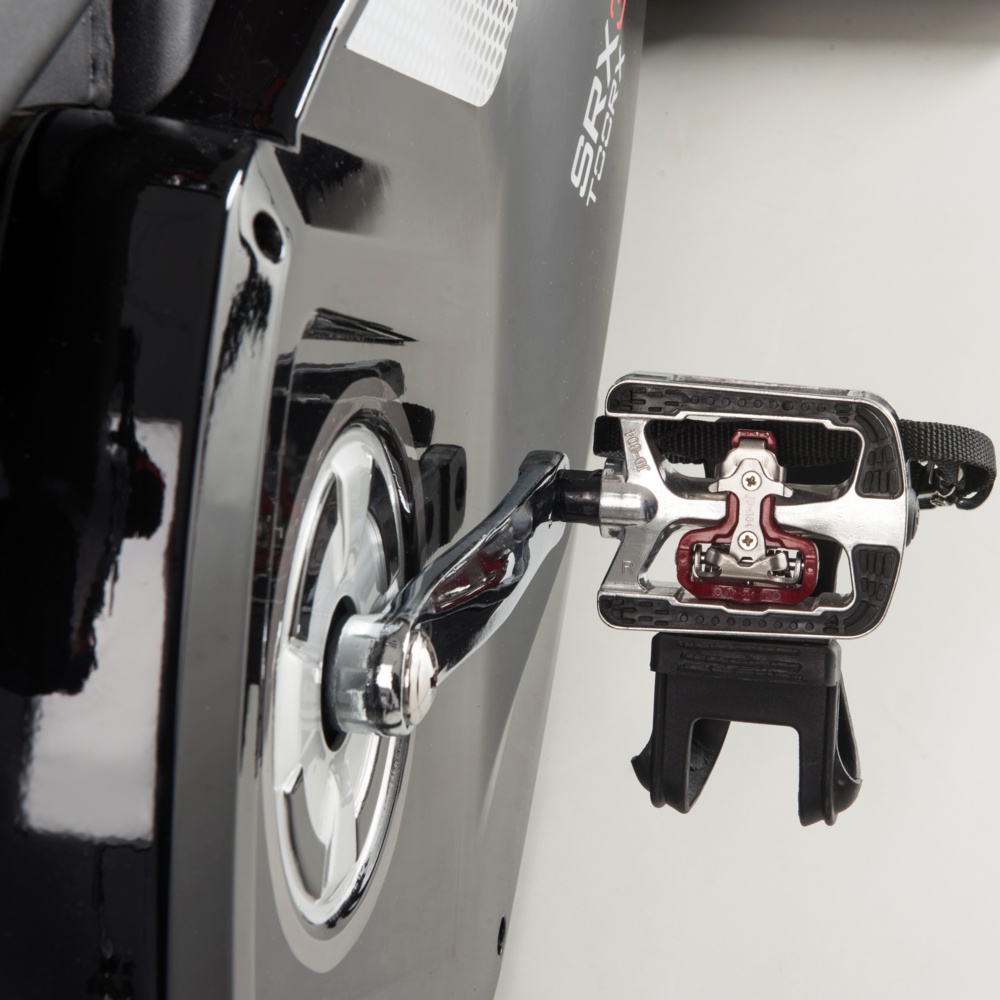 Trasmissione a cinghia con pignone fisso. Sistema di frenaggio magnetico con regolazione elettronica dello sforzo e freno a tampone di sicurezza. Dotato di leva di sicurezza per il bloccaggio rapido del volano. Massa volanica peso 24 kg, lavorato CNC e bilanciato. HRC-HEART RATE CONTROL. Ricevitore wireless integrato e fascia cardio inclusa. APP READY. iConsole+App (inclusa). Kinomap Fitness App (compatibile).