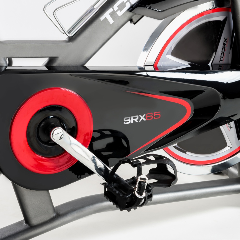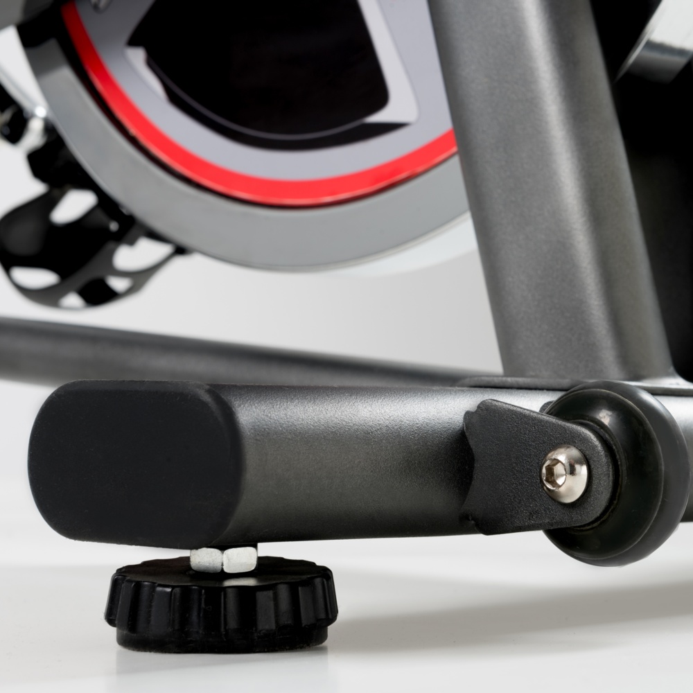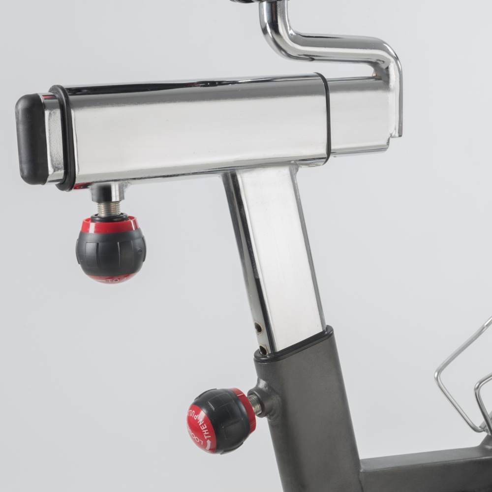 Trasmissione a cinghia con pignone fisso. Sistema di frenaggio a tampone con feltri. Leva di sicurezza per il bloccaggio rapido del volano. Massa volanica peso 22 kg (bilanciato). Ricevitore wireless integrato.