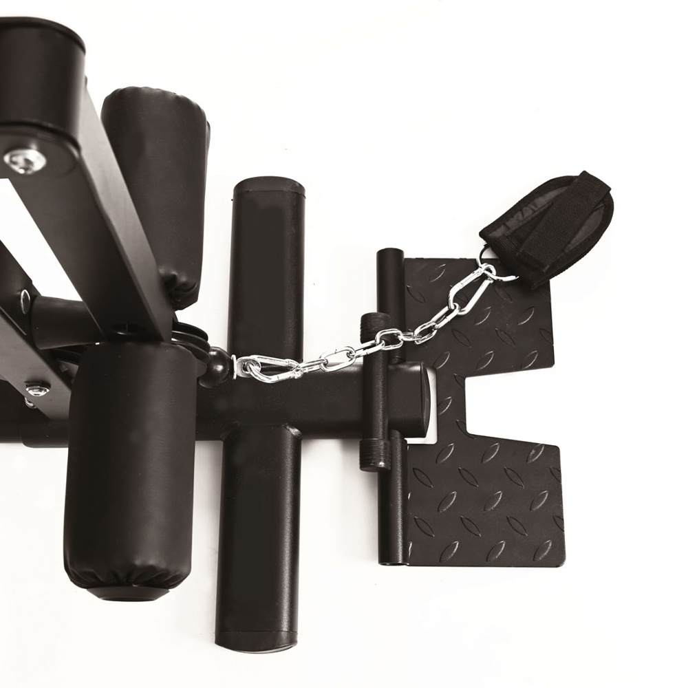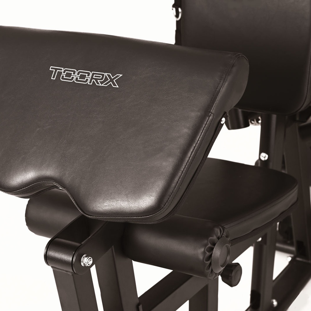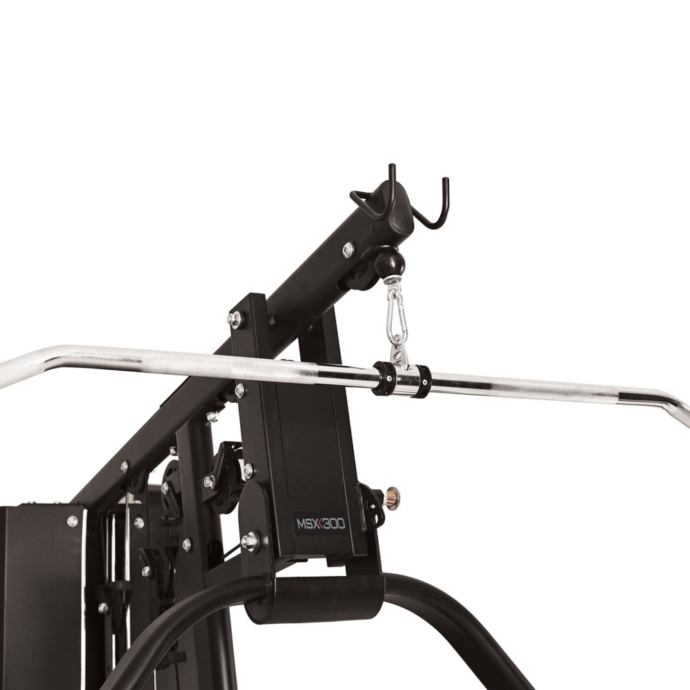 Il successo dell’ineguagliata linea di stazioni multifunzione Toorx è destinato a confermarsi ulteriormente grazie all’inserimento, nella prestigiosa Chrono Line, di questa sofisticata e poliedrica multigym. MSX 300 si caratterizza infatti, oltre che per la completa varietà di esercizi praticabili a vantaggio di tutti i gruppi muscolari, per la linea elegante, grazie ai tubi flat oval di generosa sezione, per dettagli costruttivi particolarmente raffinati, per l’elevatissima qualità costruttiva e per la possibilità di essere completata con l’aggiunta di un’apposita leg press con seduta dedicata (optional).