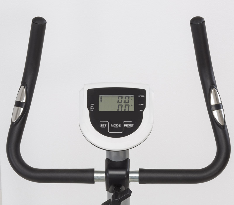 Sistema de travagem magnética com regulação manual do esforço em 8 níveis. Massa do volante de 6 kg. Peso máximo do utilizador 110 kg. HAND PULSE. Acesso facilitado.