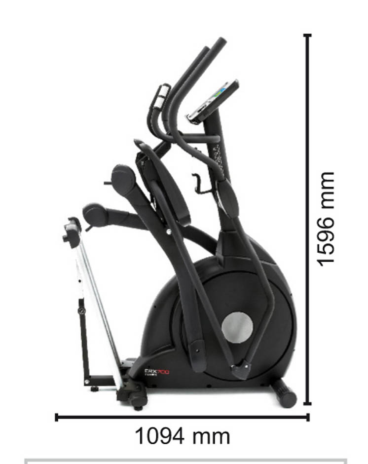 | Informações | tempo, velocidade, distância, calorias, pulsações, RPM, programas: manual, iniciante, avançado, desportivo, cardio, watts, recuperação, medidor de gordura corporal, 4 HRC |